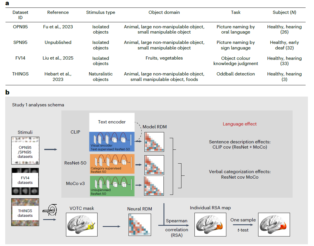 随后,研究通过表征相似性分析(RSA)提取语言相关的“增量效应”,在 VOTC 内定义两类效应: