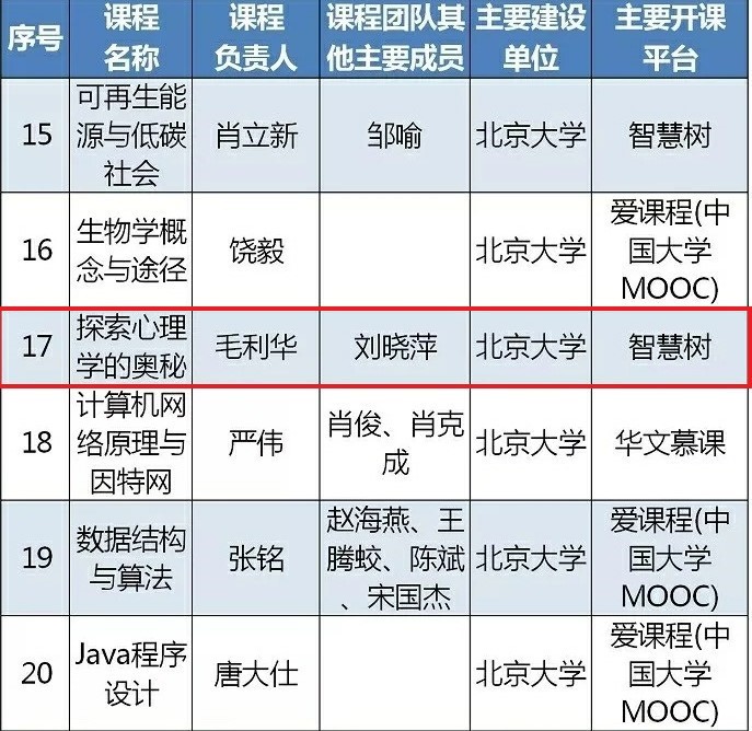 加强在线开放课程的建设,着力打造具有高阶性、创新性和挑战度的“金课”是我国高等教育的重要方向之一。近日,北京大学心理与认知科学学院毛利华副教授基于智慧树网络平台开授的在线课程《探索心理学的奥秘》,经教育部公示被认定为2018年国家精品在线开放课程。《探索心理学的奥秘》在线课程以深入浅出的方式,帮助初步了解心理学的学生培养了科学的心理学思维模式。