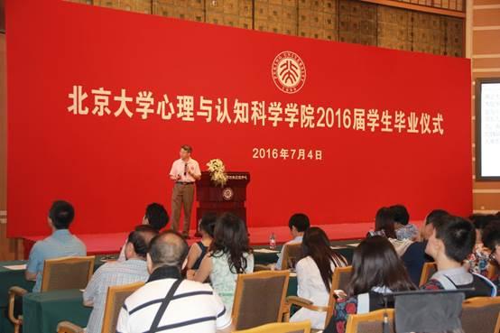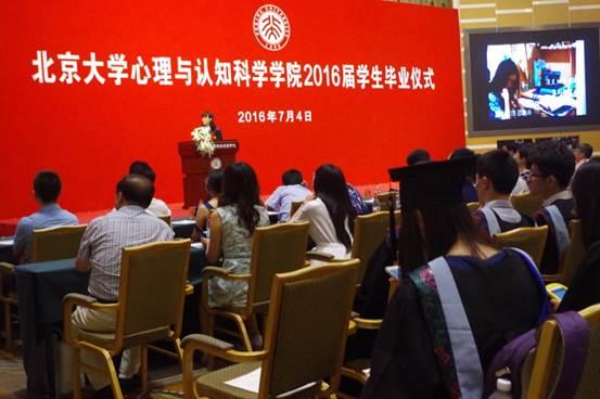 2016年7月4日,北京大学心理与认知科学学院2016届学生毕业仪式在英杰交流中心阳光大厅隆重举行。北京大学心理与认知科学学院(以下简称心理学院)20余名教师出席毕业仪式。220余名毕业生身着学位服,与师友、家人一同见证了人生中这一重要时刻。会议由2010级博士毕业生尚哲主持。