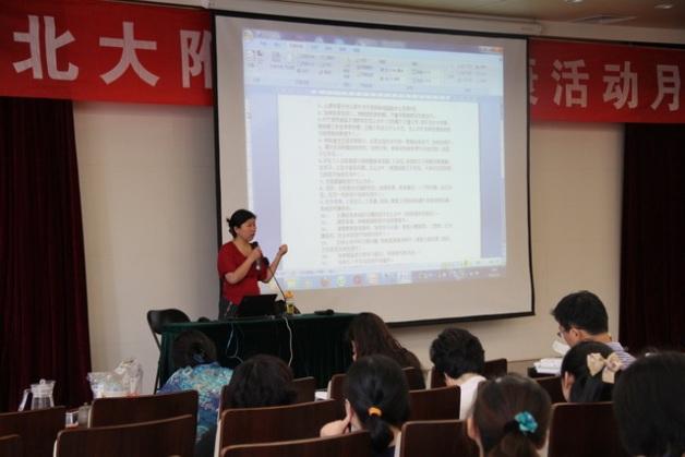 2012年5月6日,受北大附中心邀请,我系易春丽老师为北大附中的教师们进行了“家庭心理学与个体心理辅导”主题培训,共有60多位老师参加了此次心理培训(其中初中部21人、高中部20人、预科部1人、北达资源20人)。