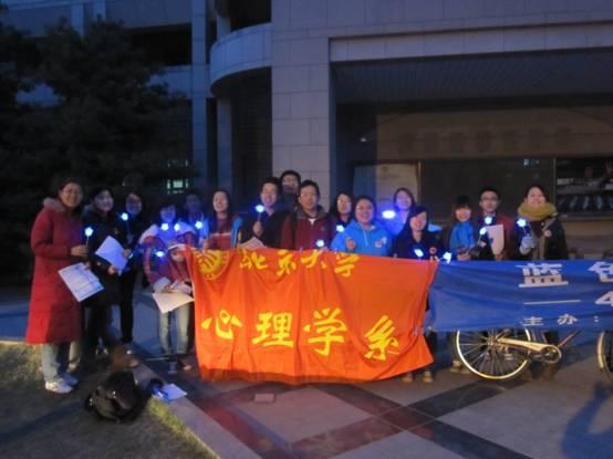 2012年4月2日,是第五个世界自闭症日。为提高全社会对自闭症问题的关注度,加强公众对自闭症家庭的社会支持。美国自闭症服务机构( Autism Speaks)发起了“点亮蓝灯”行动,在北京星星雨教育研究所的倡导下,北京将同时举行点亮蓝灯仪式。因北京大学心理学系吴艳红教授实验室与星星雨保持紧密联系,为北京蓝色行动搭建新的平台。在我系师生的共同努力下,由北京大学心理学系学生会与研究生会承办的“点亮蓝灯,传递关爱”蓝色行动于4月2日傍晚在北京大学百周年纪念讲堂前顺利举办。