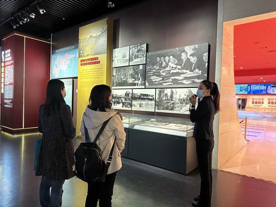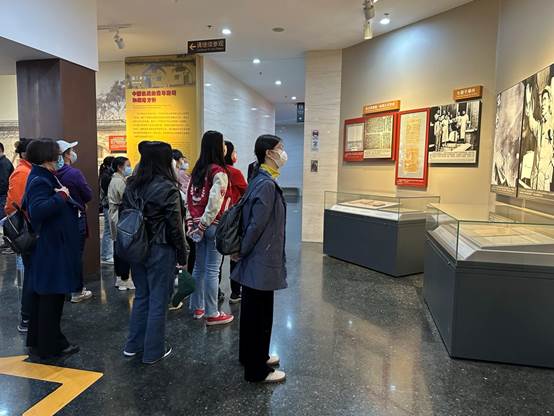 步入抗战馆内,支部老师们在讲解员的引导下进行参观与学习,共同回顾了十四年的抗战历史。从局部抗战到中国共产党倡导下的全民族抗战,共产党始终坚持正确的抗战方针,发挥了中流砥柱的作用。结合展览资料,老师们直观地看到了中国人民在抗日战争中的牺牲与奉献,以及为世界和平作出的彪炳史册的历史贡献,并被中国人的天下兴亡、匹夫有责的爱国情怀深深感动。