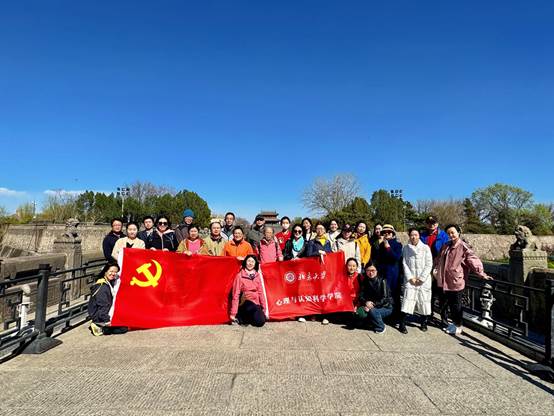 随后,支部前往卢沟桥旧址参观。卢沟桥横跨卢沟河,是北京现存最古老的石造连拱桥,1937年7月7日卢沟桥事变爆发,日本发动全面侵华战争,中国抗日军队在卢沟桥打响了全面抗战的第一枪。踏上这座古桥,战争硝烟已然消散,抗战精神长存心间,回望历史,中华民族历经磨难,老师们感受到了中华民族宁死不屈的民族气节,中国人民不畏艰苦的英雄气概,以及中国共产党领导肩负中国民族复兴的伟大壮举。