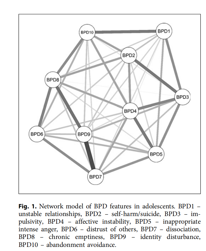该论文链接:Wang, Q., Li, Z., Zhong, J. (2024). Network Analysis of Borderline Personality Features in Adolescence Using a Screening Tool in a Chinese Community Sample. https://doi.org/10.1159/000535586