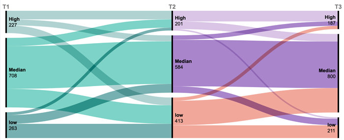 研究发现(1)PLWH存在三种潜在的污名类别:高HIV污名(具有更高水平的预期和内化污名)、中等HIV污名和高HIV污名(尤其表现为低水平的内化污名)。(2)PLWH并不总是固定在某一个污名类别,而是随着时间动态转变。(3)个体层面,女性、高心理困扰(抑郁、焦虑、压力)和低心理资本(心理韧性、自我掌控、乐观等)的PLWH倾向于保持在或转变为中等HIV污名组和高HIV污名组。(4)社会层面,有形和信息支持(vs. 情感支持)有助于高HIV污名的PLWH转变为低HIV污名类别,而对于低HIV污名的PLWH起反作用,反之亦然。